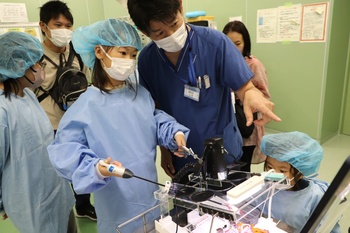 院内ブースでは、テーマにちなんだSDGsに関する展示をはじめ循環器内科部長の江口智也医師と糖尿病・内分泌代謝内科医長の吉岡佑紀医師が各専門分野について健康講座を実施。毎年子どもたちに人気の腹腔鏡を使って物を掴んで移動させる体験や専用ゴーグルを使用しての済生丸VR体験、機械を使ってお菓子を分包する薬剤師体験、デコレーション歯ブラシの作成などを実施しました。